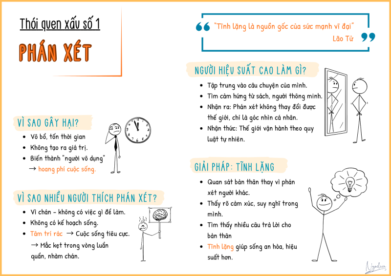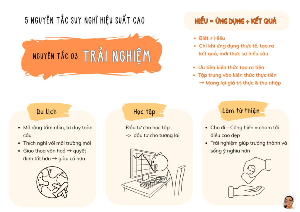 Giờ đây, mình đã thay đổi cách học và đọc. Mình không còn chạy theo số lượng nữa, mà chú trọng hơn vào chất lượng của thông tin mình tiếp nhận. Nhờ có phương pháp ghi chú bằng sketchnote, mình đã có thể thu thập và ghi nhớ thông tin một cách hiệu quả hơn, để có thêm ý tưởng cho sự sáng tạo. Dù hiện tại, khả năng sáng tạo của mình vẫn chưa thực sự bùng nổ, nhưng ít nhất mình đã biết cách để nâng cao năng lực sáng tạo.