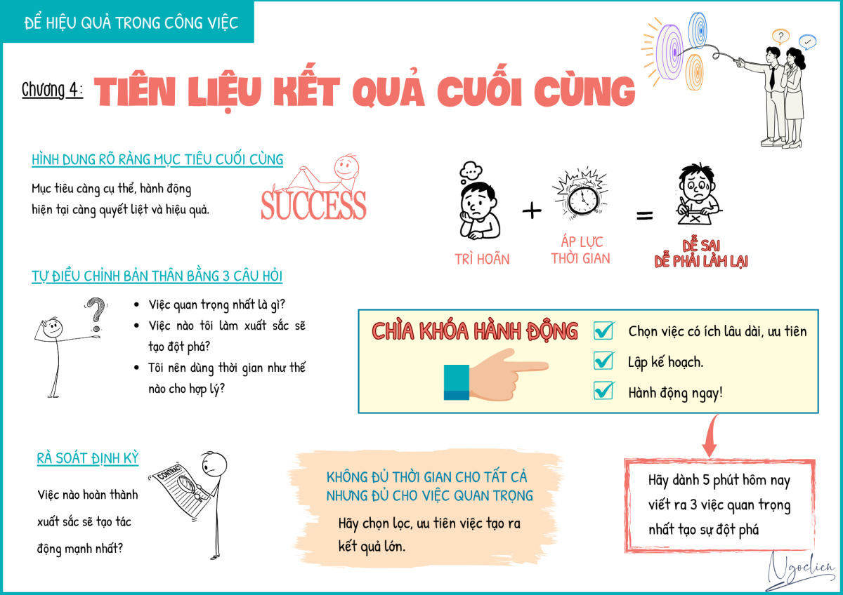 Những mục tiêu được phác thảo ra giấy sẽ tác động tích cực đến tư duy của bạn, chúng tạo động lực và thúc đẩy tinh thần làm việc, khơi dậy tư duy sáng tạo, gợi mở năng lực tiềm tàng giúp bạn vượt qua rào cản của căn bệnh trì trệ. Càng dành nhiều thời gian cân nhắc mục tiêu, nghị lực và khao khát hoàn thành mục tiêu càng được củng cố