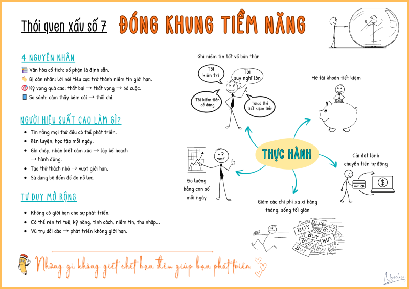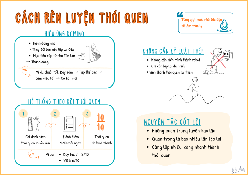 Nên nếu bạn muốn phát triển bản thân mà không bị cuốn vào vòng xoáy áp lực, hãy thử vẽ lại những điều bạn học được hay những ý tưởng bất chợt nghĩ ra. Thực hành mỗi ngày, dù chỉ là 5 phút, dù chẳng có năng khiếu vẽ vời gì. Vì kỹ năng này không phải dành cho người vẽ giỏi, mà dành cho người muốn sống vui và học nhẹ nhàng hơn mỗi ngày.