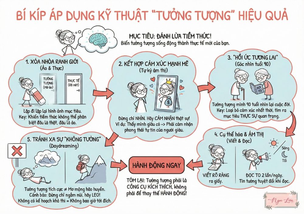 Tất nhiên, mình không nói các bạn chỉ cần ngồi mơ mộng thôi sẽ có kết quả. Tưởng tượng ở đây là để tạo ra một “mồi lửa” cảm xúc, sau đó chính cảm xúc ấy sẽ dẫn lối cho những hành động quyết liệt để hiện thực hóa mục tiêu.