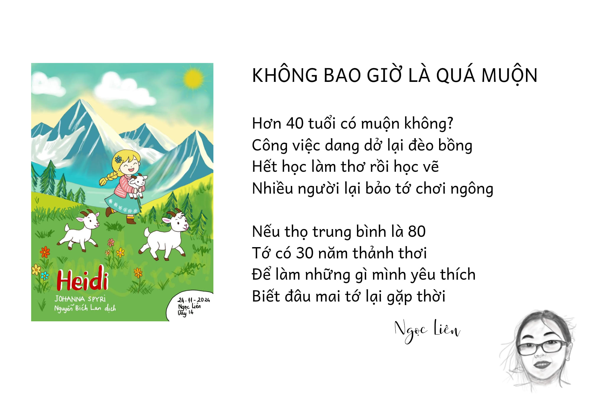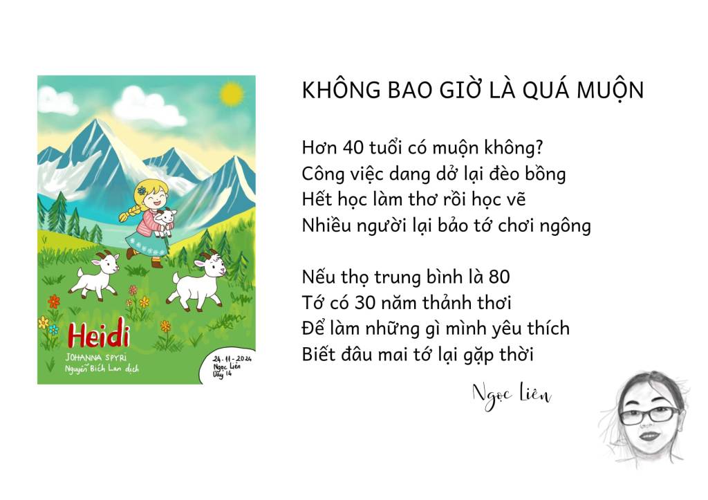 Hơn 40 tuổi có muộn không?Công việc dang dở lại đèo bồngHết học làm thơ rồi học vẽNhiều người lại bảo tớ chơi ngông.