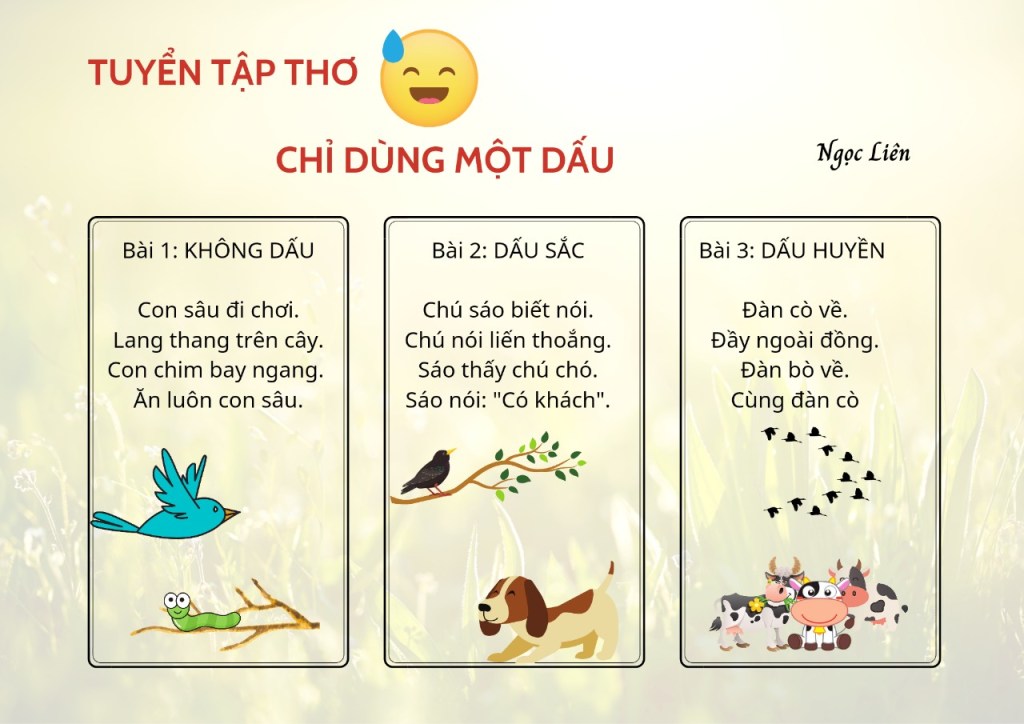 Con sâu đi chơi.Lang thang trên cây.Con chim bay ngang.Ăn luôn con sâu.