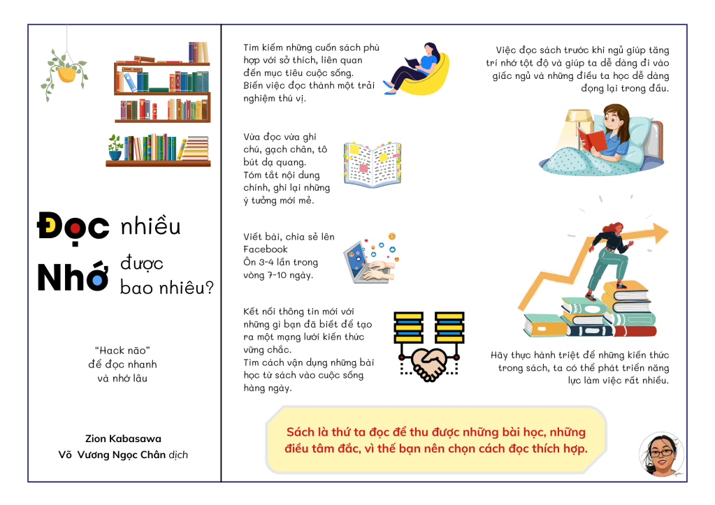– Việc “vẽ” lại nội dung trên Canva và viết bài đăng trên blog cá nhân là một việc rất vui, mình lại là người ham vui, nên lại muốn đọc thêm để viết bài nữa. Nhờ đó, động lực đọc sách cũng được tăng thêm, và mình lại đọc được nhiều sách hơn.