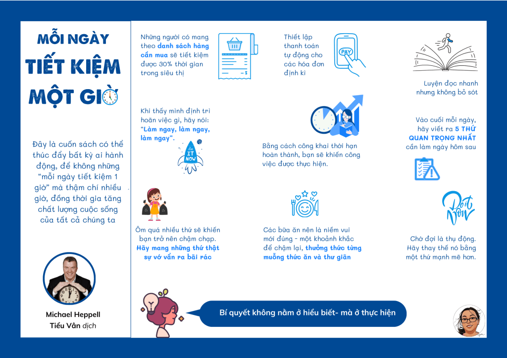 Mỗi ngày tiết kiệm một giờ ư? Nghe có vẻ hoang đường nhỉ, ngày nào mình cũng bận sấp mặt, thở còn chẳng kịp, nói gì tiết kiệm hẳn một giờ. Trước đây mình cũng nghĩ thế, nhưng sau một thời gian thử nghiệm, theo những gì học được, mỗi ngày có thêm một giờ là hoàn toàn có thể. Mình vẫn có thời gian đọc sách, viết bài đều đặn cho blog cá nhân.
