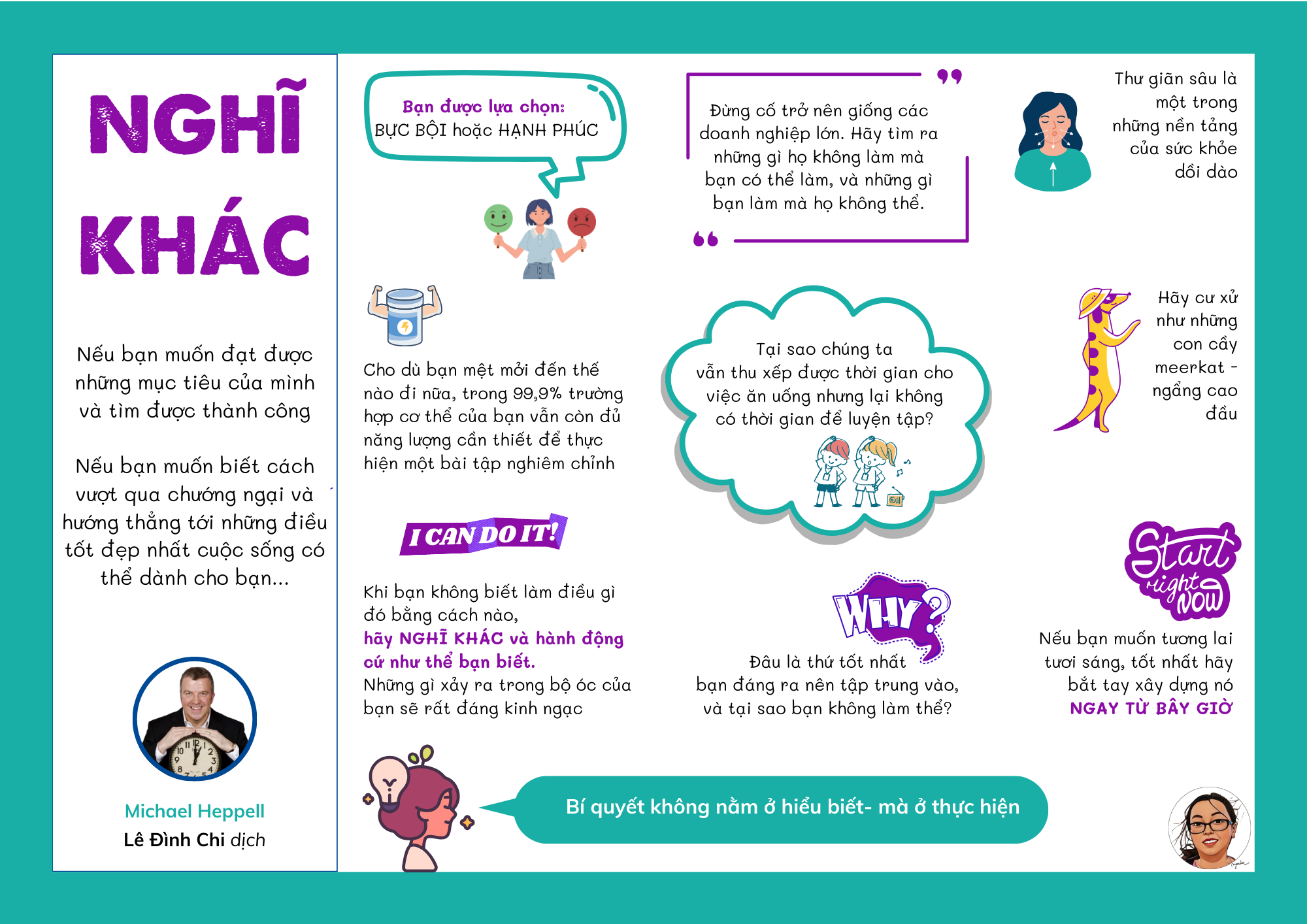 Nhưng rồi, một ngày đẹp trời, mình tình cờ đọc cuốn “Nghĩ khác” của Michael Heppel và phát hiện ra một bí quyết đơn giản mà siêu hiệu quả: thay vì cứ hỏi “Tại sao?”, sao không thử đổi thành “Bằng cách nào?”. Ví dụ nhé, thay vì tự vấn “Tại sao tôi lại không có thời gian?”, hãy thử hỏi “Bằng cách nào tôi có thể tìm được thêm thời gian?”. Chưa chắc câu trả lời sẽ xuất hiện ngay, nhưng việc đặt đúng câu hỏi sẽ dẫn mình đến những giải pháp sáng tạo và thực tế hơn.